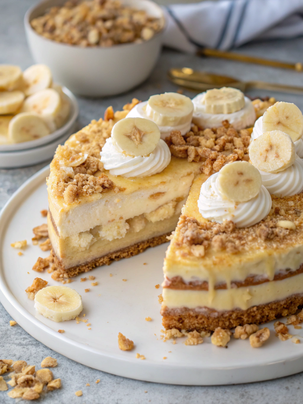 The Banana Pudding Crunch Cheesecake is more than just a dessert; it’s an experience. It perfectly balances the nostalgic comfort of banana pudding with the sophisticated richness of a classic cheesecake.