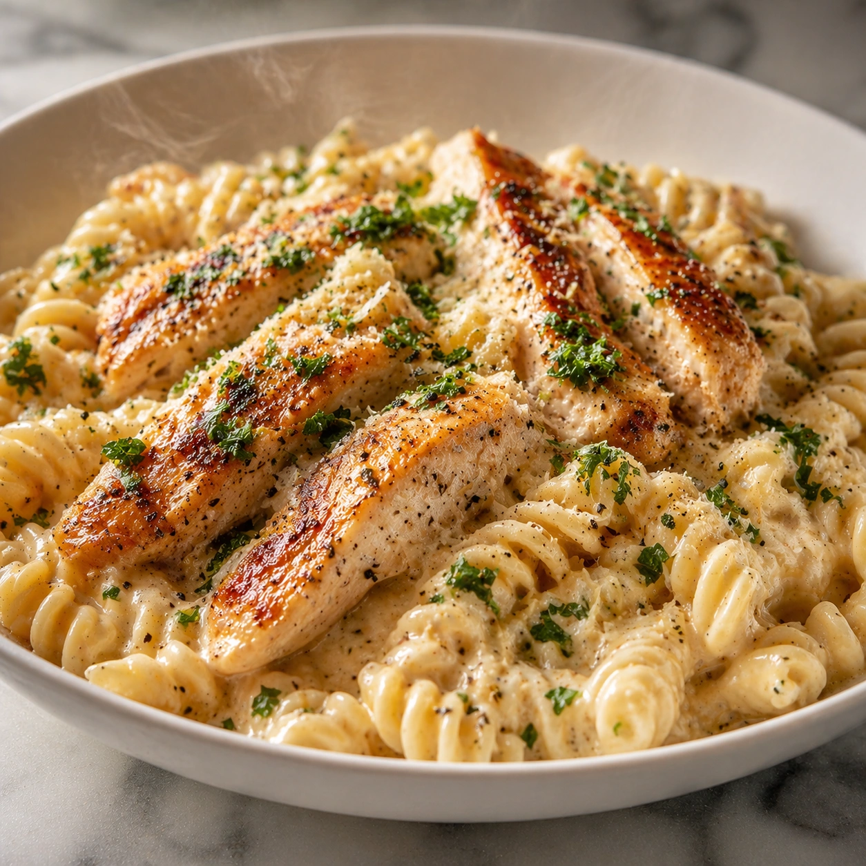 This delicious Creamy Garlic Parmesan Chicken Pasta strikes the perfect balance between indulgent restaurant quality and weeknight practicality. The velvety sauce, tender chicken, and perfectly cooked pasta create a symphony of flavors that will have everyone asking for seconds. Best of all, it requires no special equipment or hard-to-find ingredients.